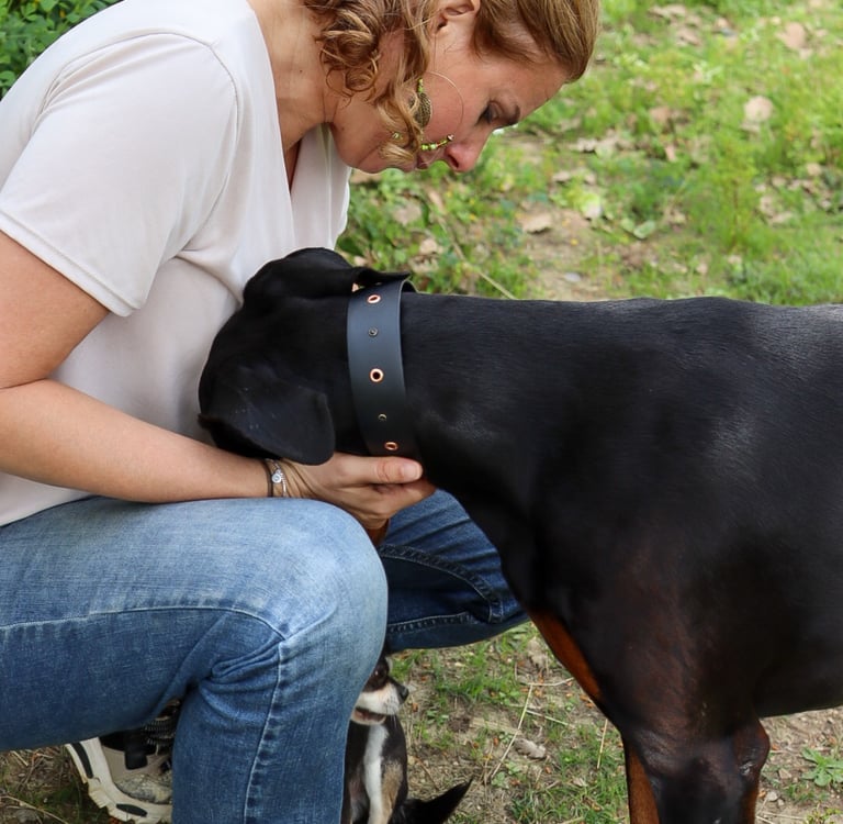 J’aide les humains dont le chien ne se pose jamais (agitation, hypervigilance, séparation compliquée, “trop-plein” émotionnel) pour retrouver un duo plus calme, plus coopératif, plus apaisé, en 3 mois, grâce à une méthode qui combine régulation émotionnelle, éducation non coercitive, solutions naturelles et fréquences vibratoires.