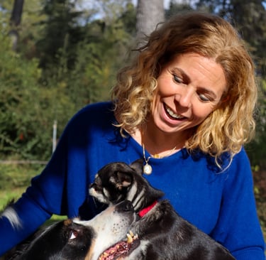 J’aide les humains dont le chien ne se pose jamais (agitation, hypervigilance, séparation compliquée, “trop-plein” émotionnel) pour retrouver un duo plus calme, plus coopératif, plus apaisé, en 3 mois, grâce à une méthode qui combine régulation émotionnelle, éducation non coercitive, solutions naturelles et fréquences vibratoires.